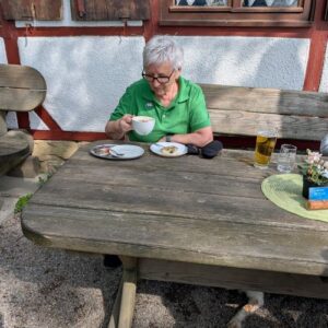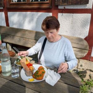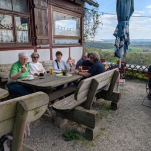 Bei strahlendem Sonnenschein machte sich unsere gut gelaunte Gruppe in Fahrgemeinschaften auf den Weg zum Lemberg. Schon das Treffen zur Abfahrt an der Halle war gesellig und stimmte auf einen rundum gelungenen Nachmittag ein! Am Lemberg angekommen ging es Richtig 7-Eichen durch den Weinberg nach oben. Wie immer kam auch das Plaudern nicht zu kurz! Schon während dem „Aufstieg“ und erst Recht von ganz oben wurden wir abermals mit der tollen Aussicht belohnt! Der krönende Abschluss folgte dann im Biergarten 7-Eichen, wo bei kühlen Getränken und gutem Essen viel geredet und gelacht wurde. Wir waren uns alle einig: Es war wieder einmal ein perfekter Nachmittag! Die Vorfreude auf das nächste gemeinsame „Abenteuer“ ist schon jetzt groß! Das nächste Mal treffen wir uns voraussichtlich am 09.05.2026 – genaueres folgt! Wer also auch einmal dabei sein möchte…einfach den Termin schon mal vormerken!